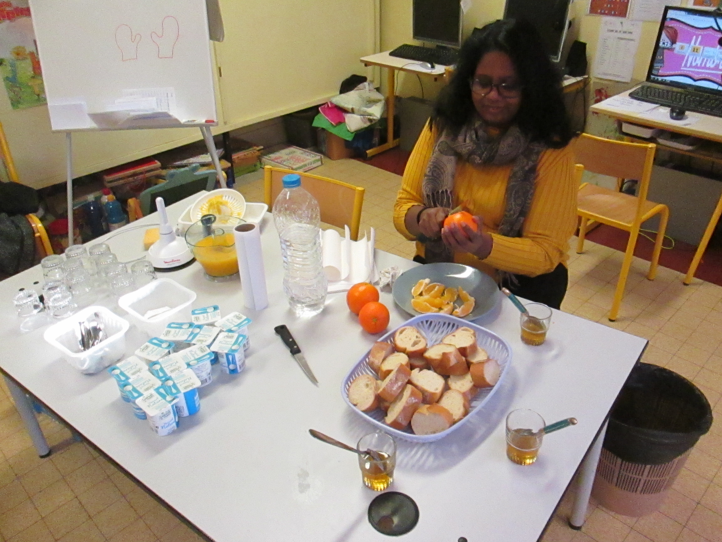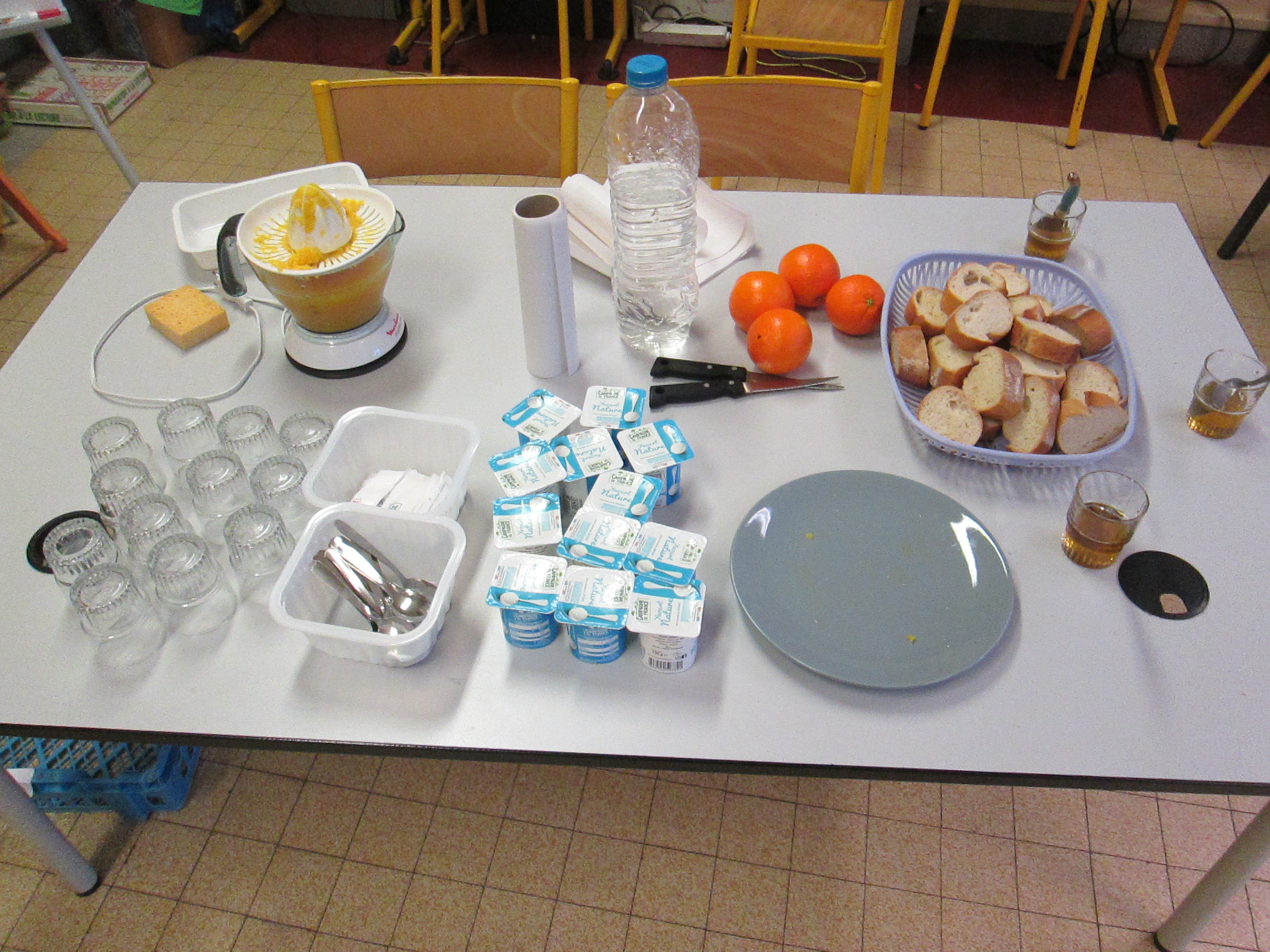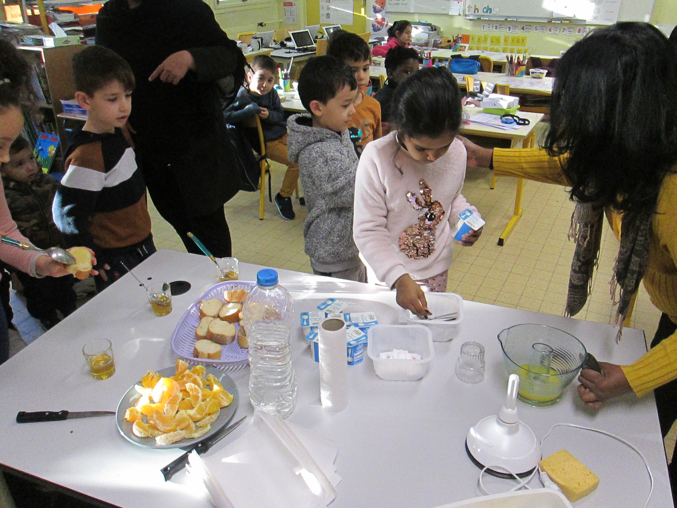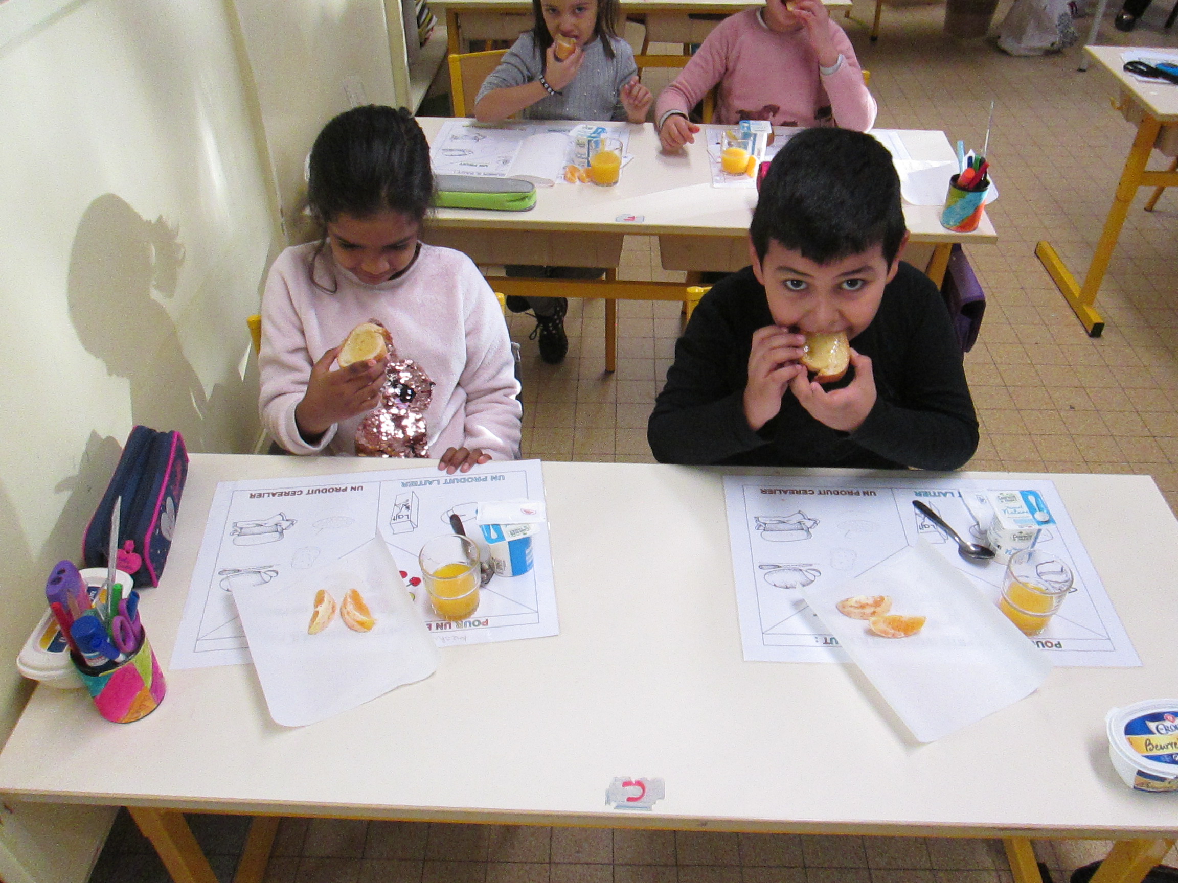 Pour notre 2ème petit déjeuner à l'école, nous avons séparé nos classes en deux et échangé avec les CE1 de Mr Allemand. Au menu: