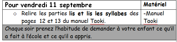 Devoirs CP Mme LACROIX